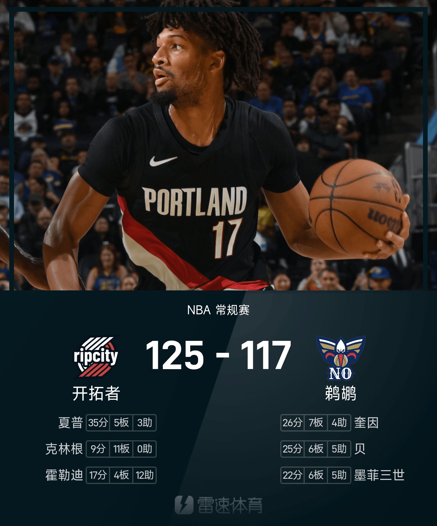 开拓者125-117鹈鹕