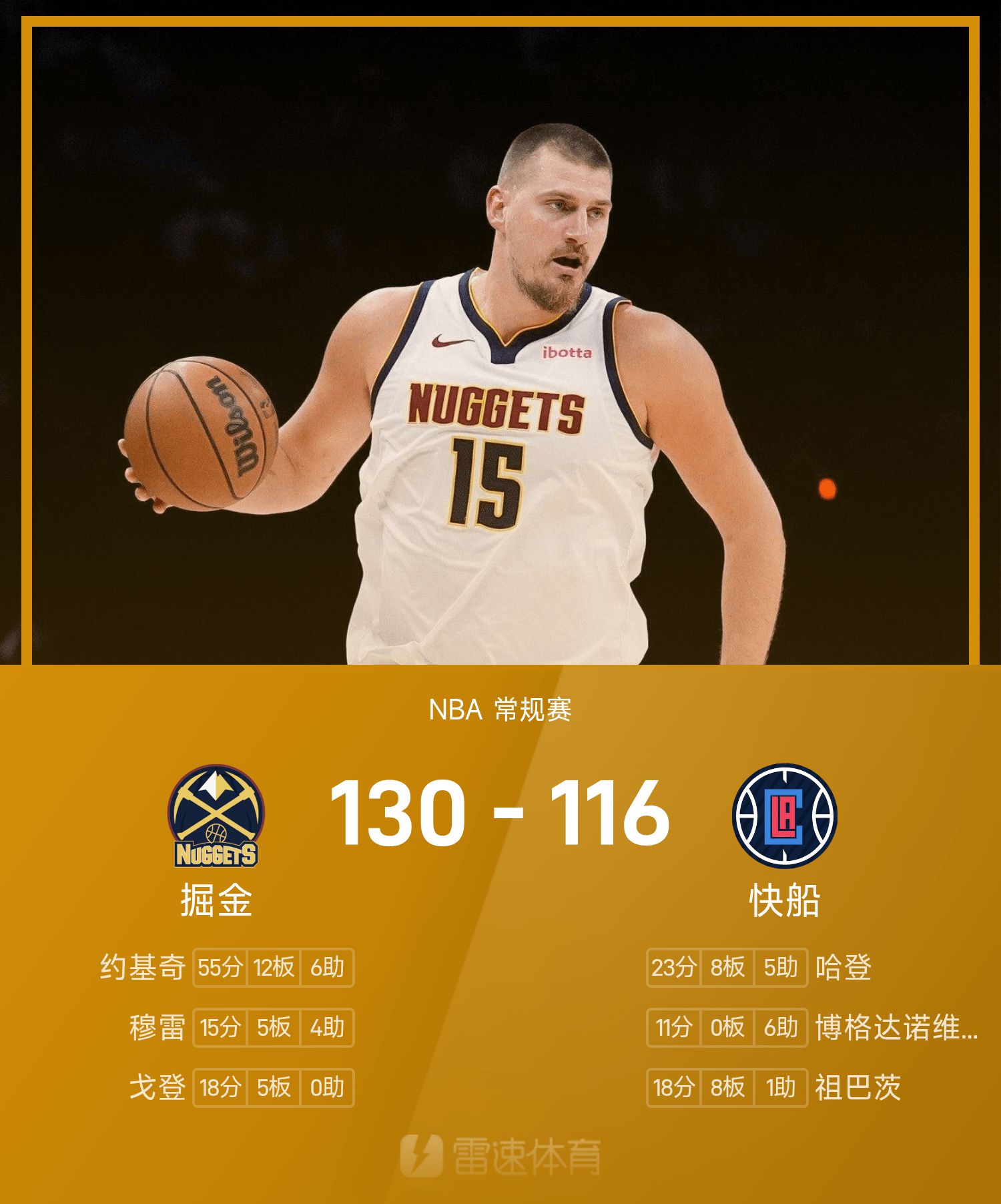掘金130-116快船
