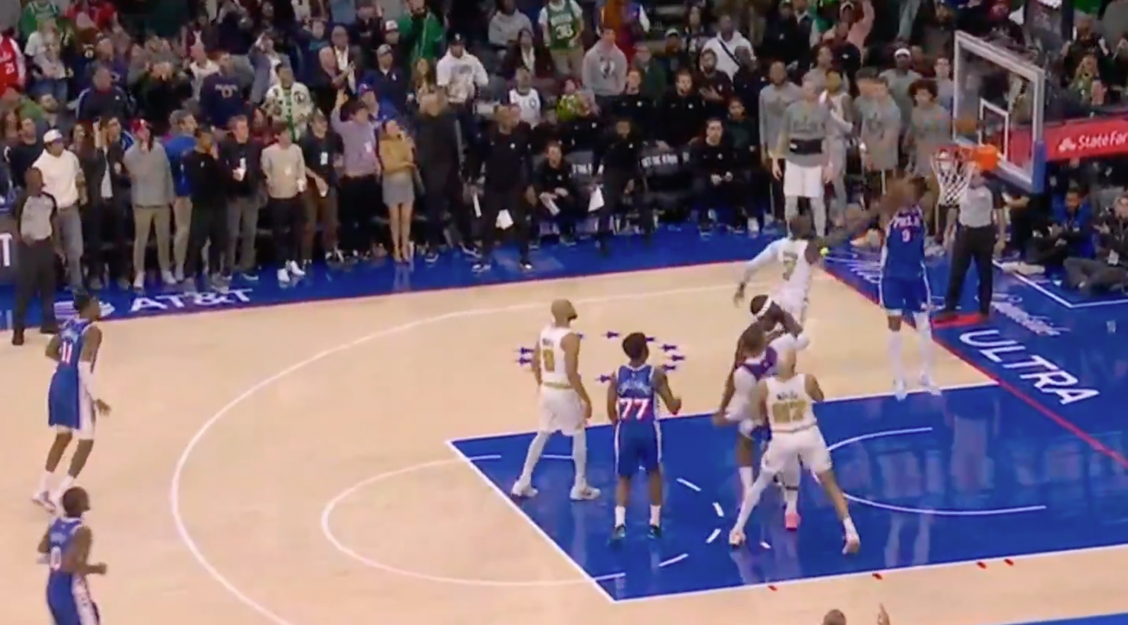 杰伦·布朗表示:“马克西当时在突破,乌布雷转身运球背对我。我以为我可以上去做个补位,但却让爱德华兹获得了空位三分球机会,然后,乌布雷就趁机溜到了我身后,拿到了一个轻快的前场抢篮板。我当时光盯着球了,必须更投入,更积极地去拼抢。”