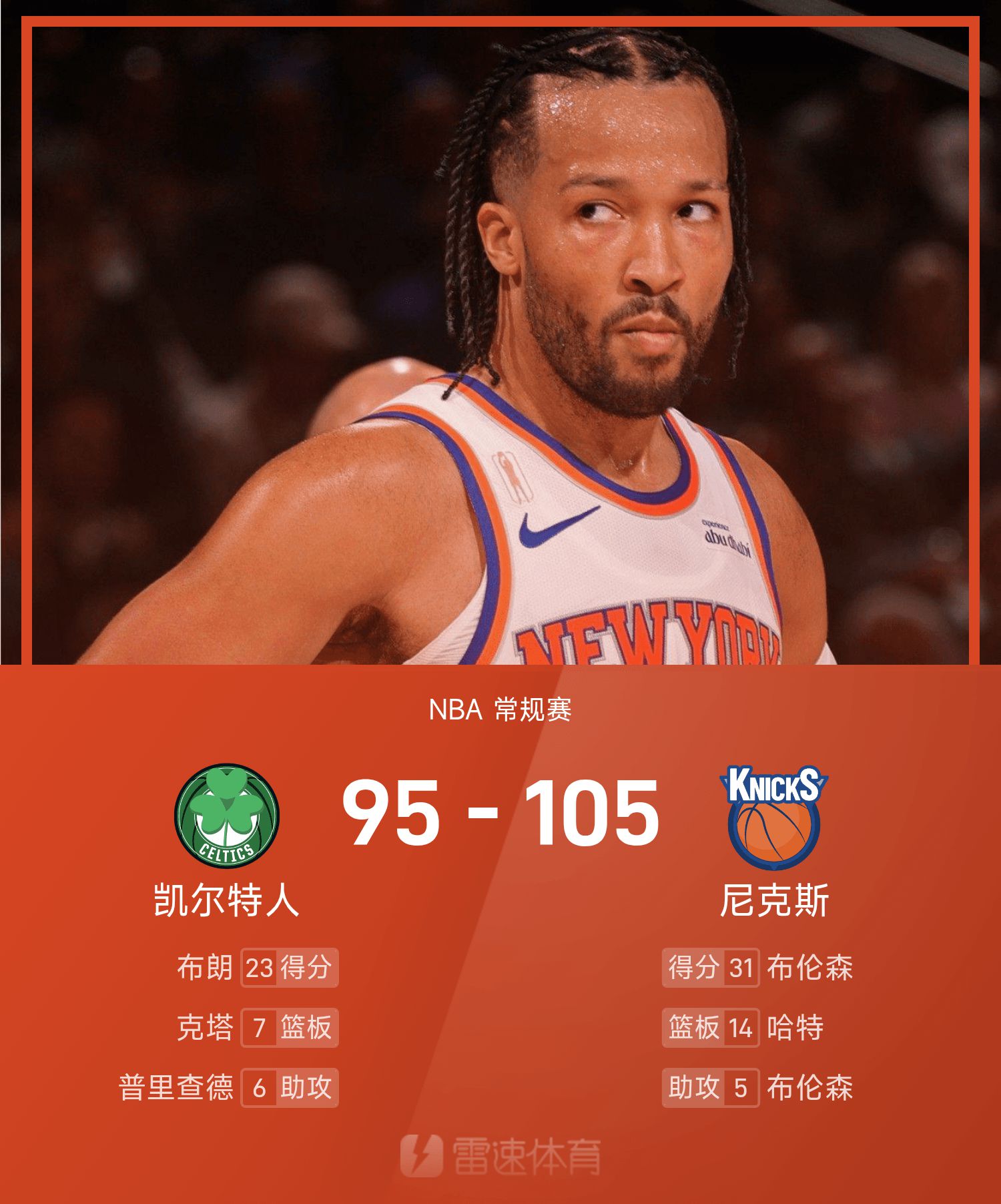 布伦森20投10中,得到31分3抢篮板5助攻。