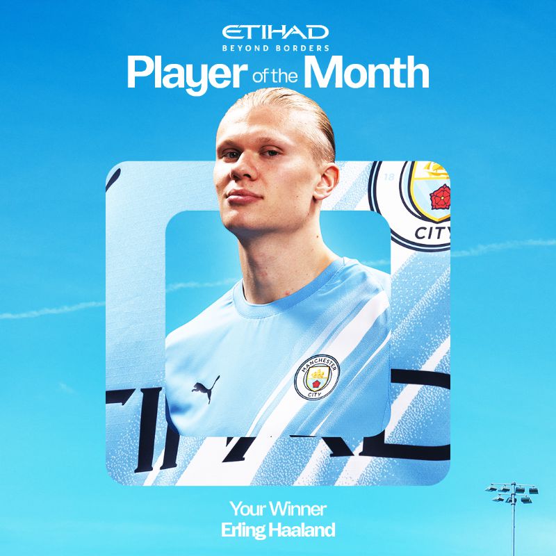 5场6球!曼城官方:哈兰德当选球队十月最佳球员