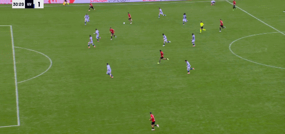 28’穆里奇迅速插上形成单刀,推远角被出击的守门员扑出