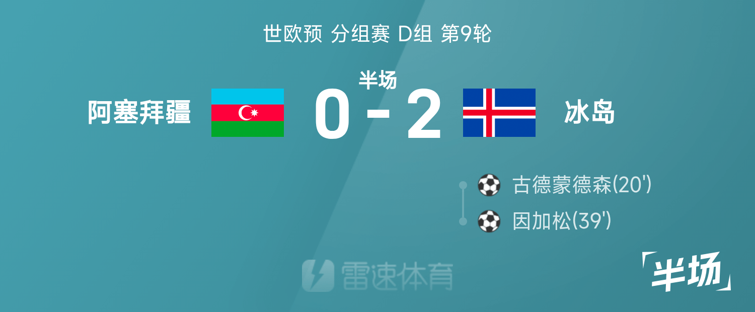 世欧预半场:古德蒙德森、因加松建功,冰岛暂2-0阿塞拜疆
