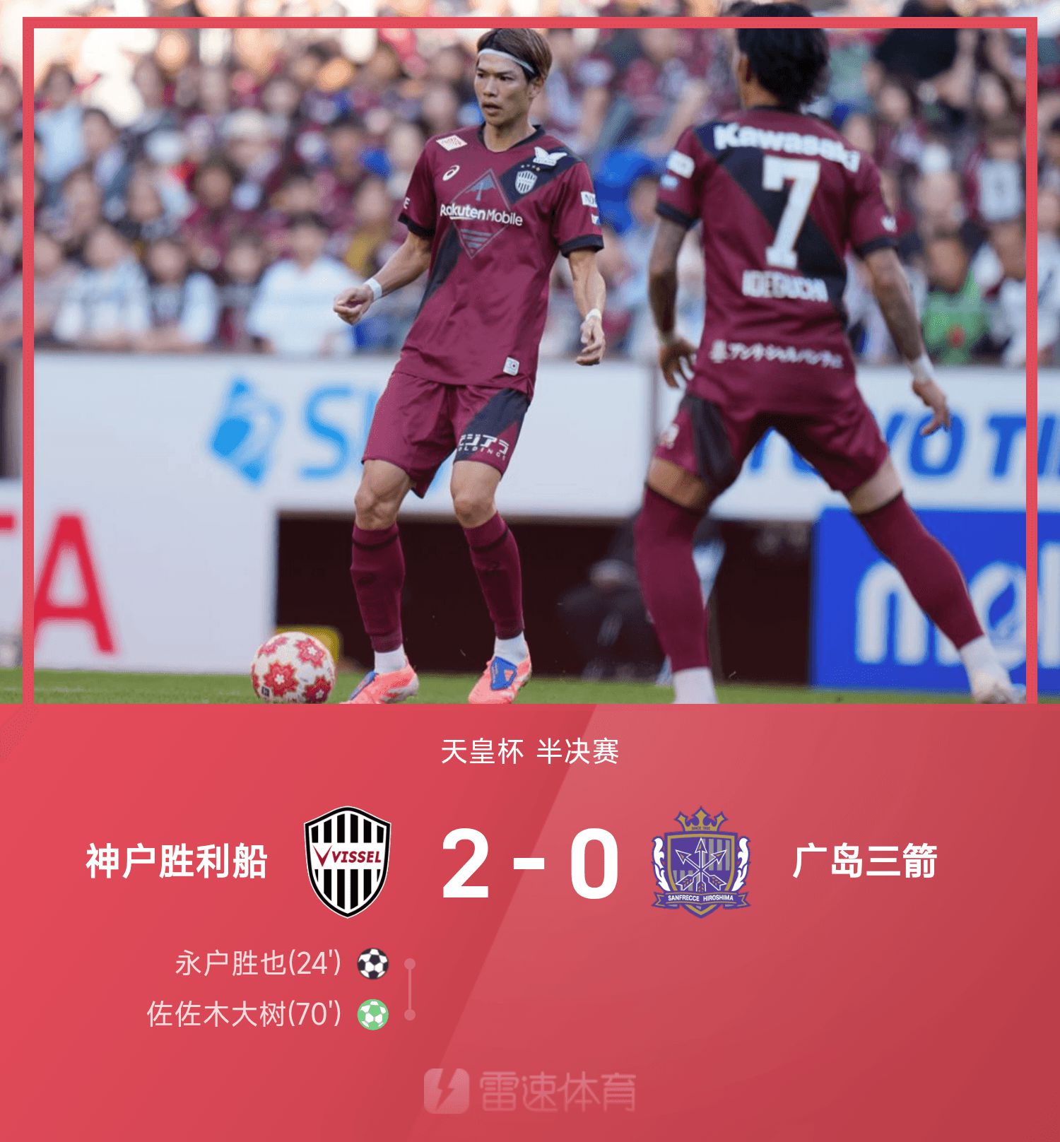 天皇杯战报:佐佐木大树争议点射,神户胜出局船2-0广岛三箭