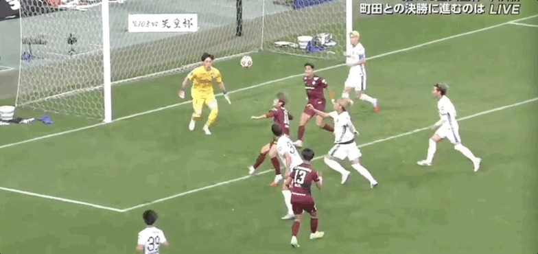 12’木下康介三秒区顶球,皮球顶高出界