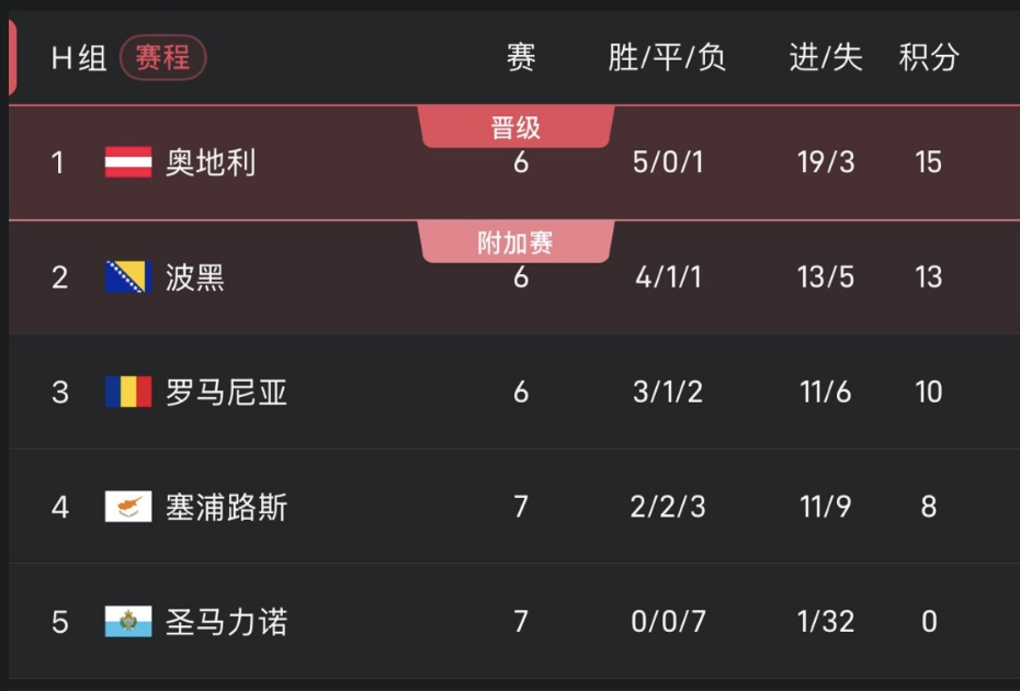 奥地利若击败塞浦路斯,且波黑未能战胜罗马尼亚,将自1998年以来首次闯入世杯赛。