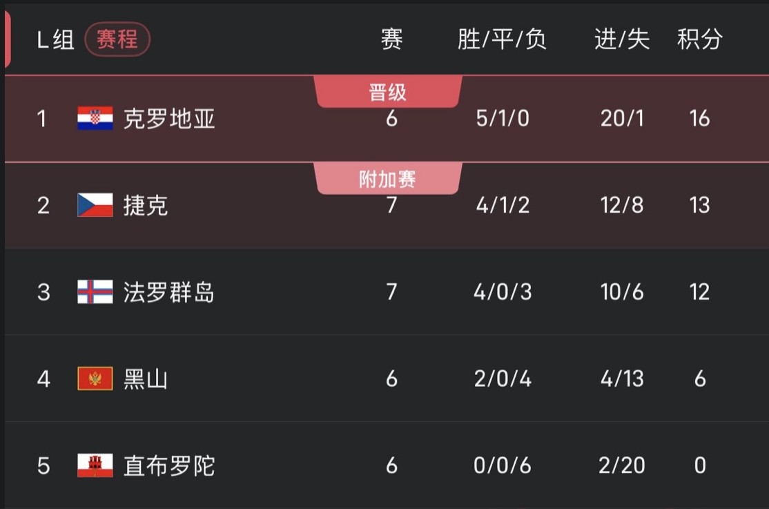 克罗地亚对阵法罗群岛,只需一分即可确保小组第一。
