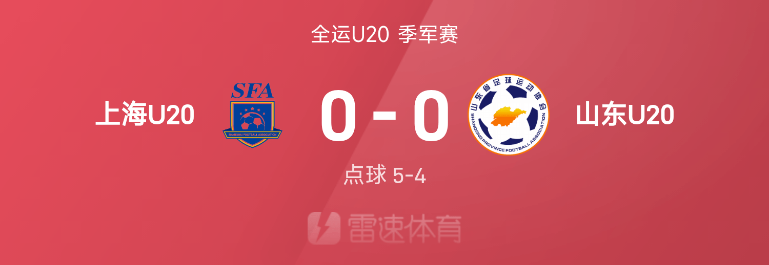 全运U20战报:宫睿聪失点,十二码大战上海5-4山东夺季军