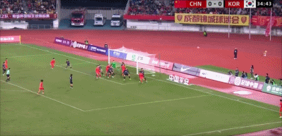 21’汪士钦自由球开到三秒区内,韩国顶球清球险些乌龙