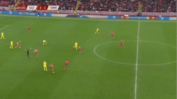 31’瑞士输送威胁传禁区球,威德默头槌攻门却没顶正部位