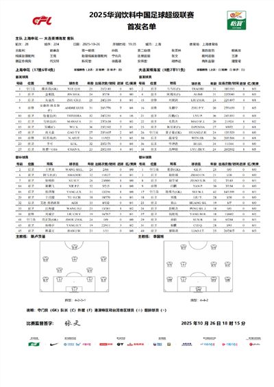 大连英博首发:26-黄子豪、2-马马杜(F)、30-温家宝、36-毕津浩、4-阿利米(F)、21-吕鹏、22-毛伟杰、25-丹尼尔-佩尼亚(F)、38-吕焯毅、15-刘祝润、16-朱鹏宇