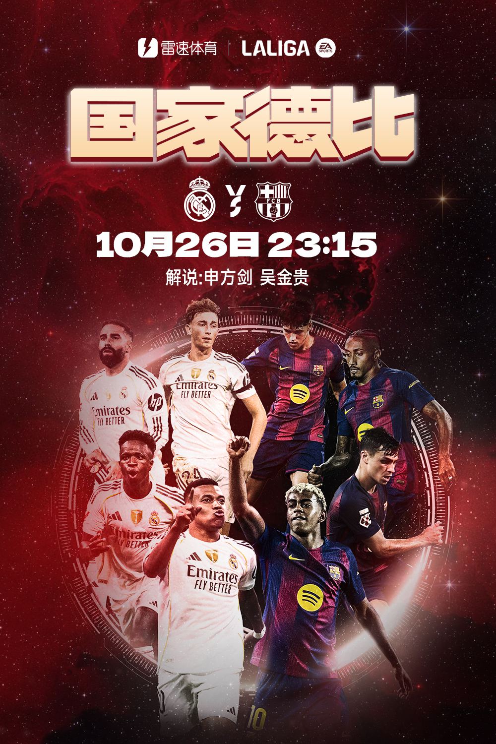 6686体育10月26日讯 北京时间10月26日23:15,西甲第10轮,皇马将在伯纳乌主队场迎战巴萨,这将是本赛季首次西班牙国家德比。目前皇马在积分榜上领跑位巴萨2分,因此此战的结果将可能影响争冠的走势。6686体育将免费视频直播这场焦点对决,并邀请知名教练员吴金贵以及著名解说员申方剑担任解说嘉宾。
