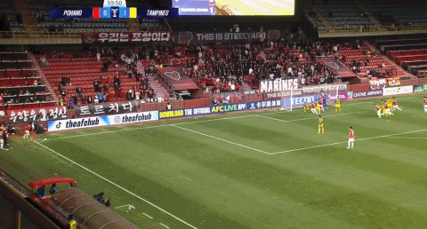87’赵尚赫跟进射门破门,浦项铁人扳平赛果分,暂1-1淡滨尼流浪者