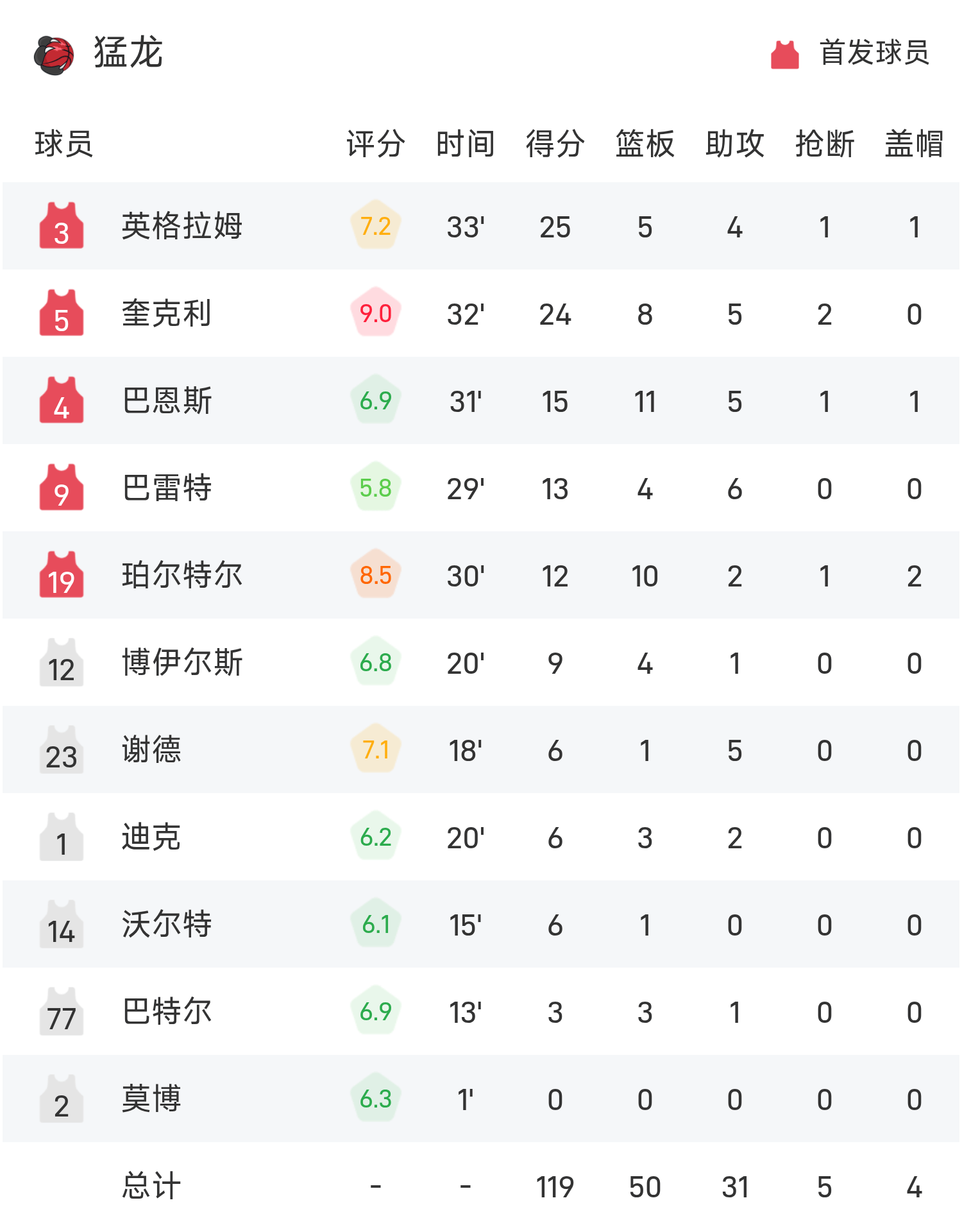 NBA战报:英格拉姆25分,猛龙119-109击败篮网