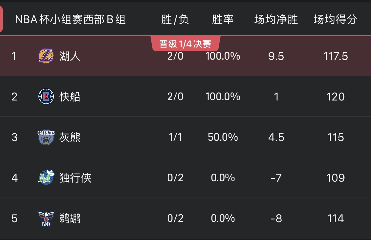 6686体育官网11月15日讯 今日的NBA杯分组赛已经全部终结,而6个小组的排名也发生了变化。