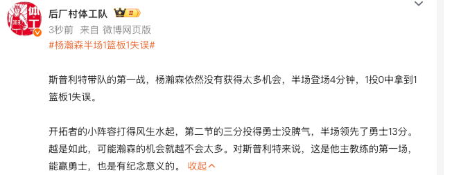 媒体人:开拓者小阵容打得越出色,杨瀚森的机会就越不会太多