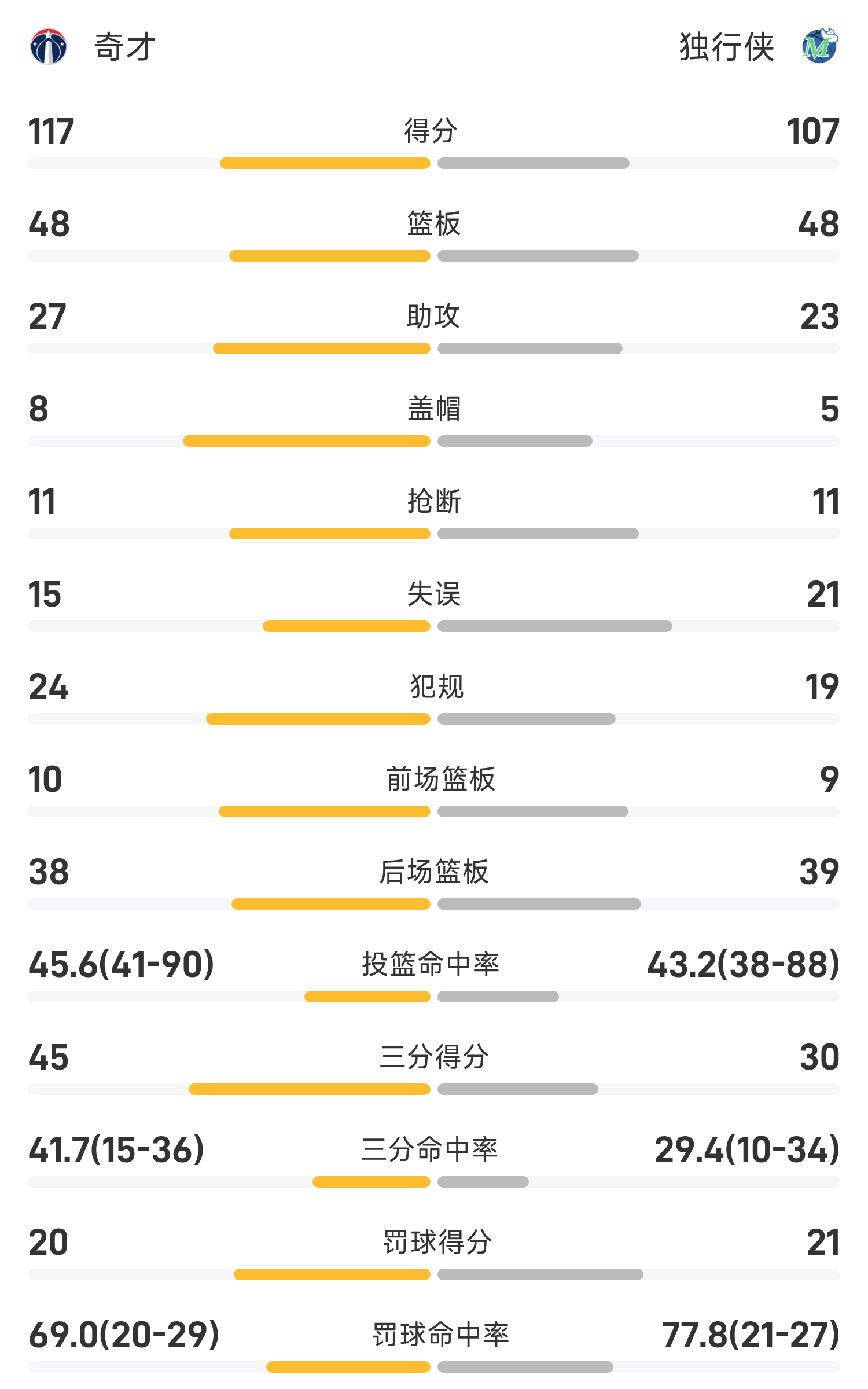 NBA战报:乔治34分11板,奇才117-107击败独行侠