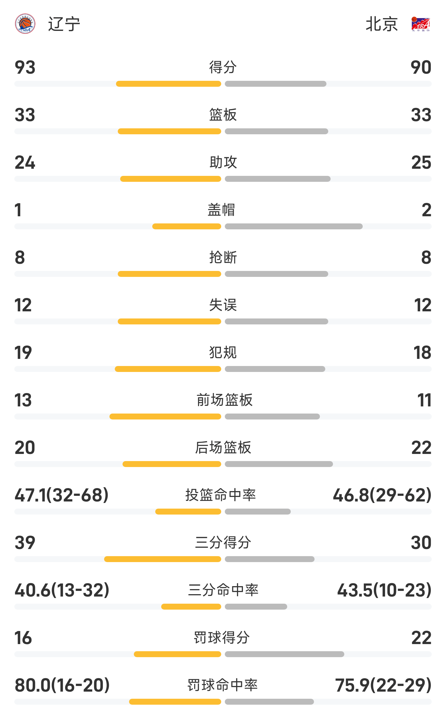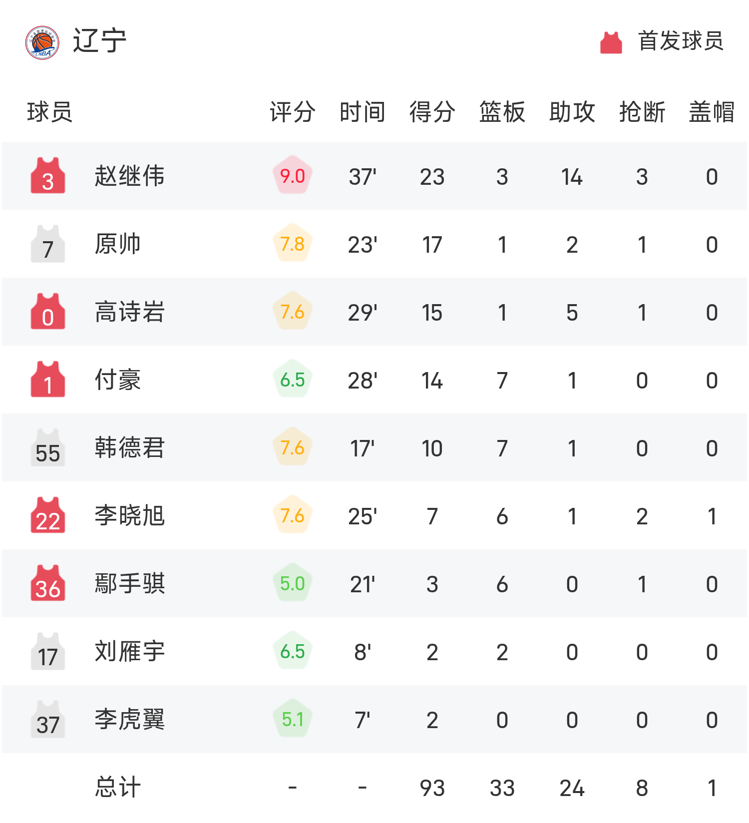 全运男篮战报:赵继伟23分14助,辽宁93-90险胜北京