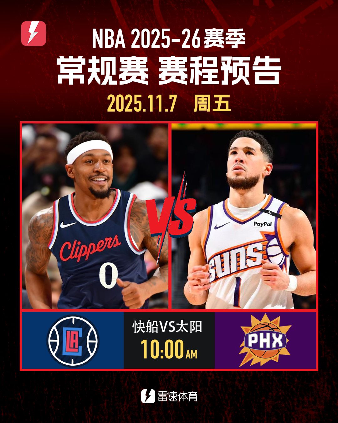 6686体育官网11月6日讯 明日NBA常规赛仅有快船对阵太阳一场竞赛。